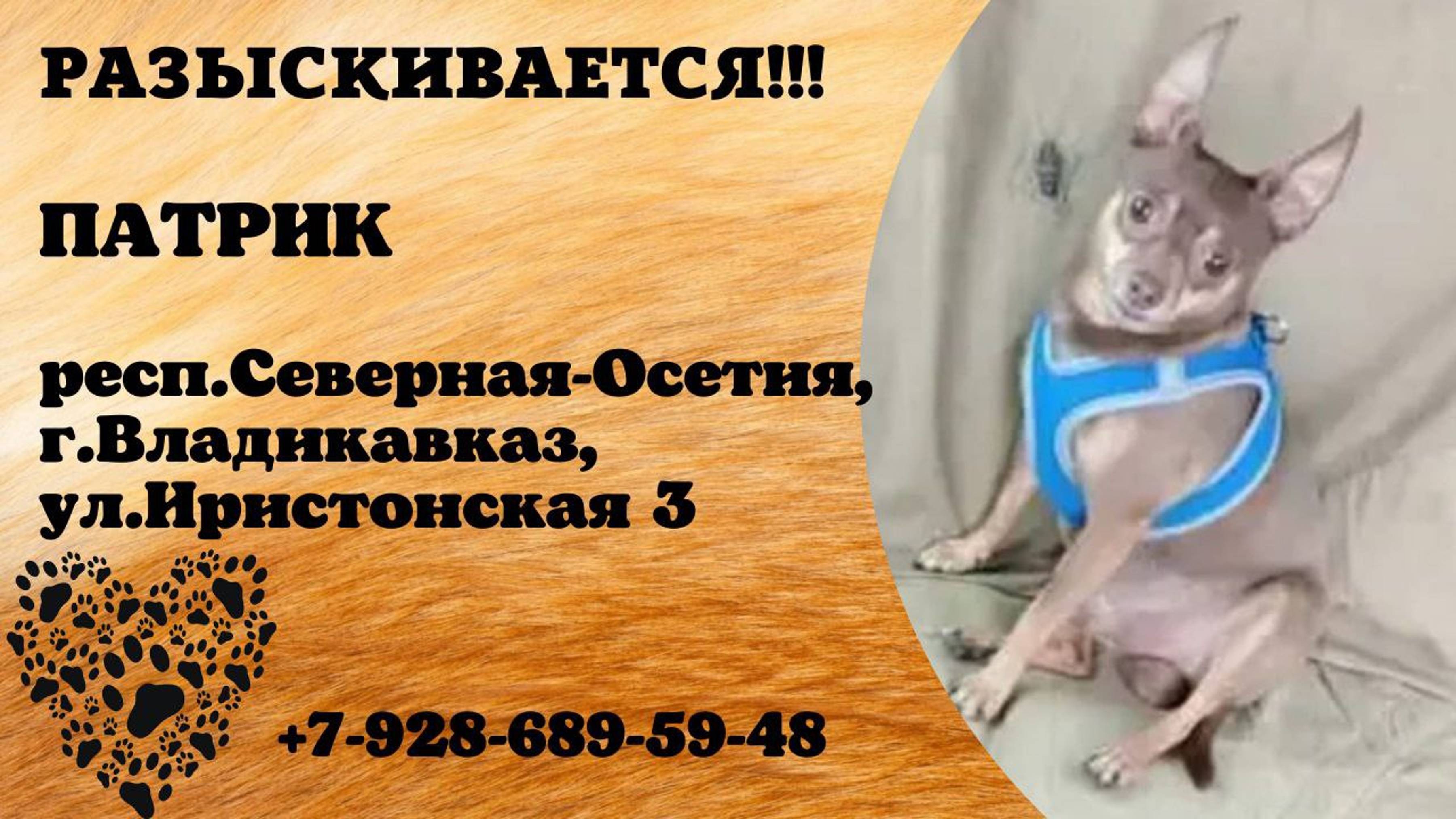 Пропала собака! ПАТРИК. респ. Северная Осетия, г. Владикавказ
