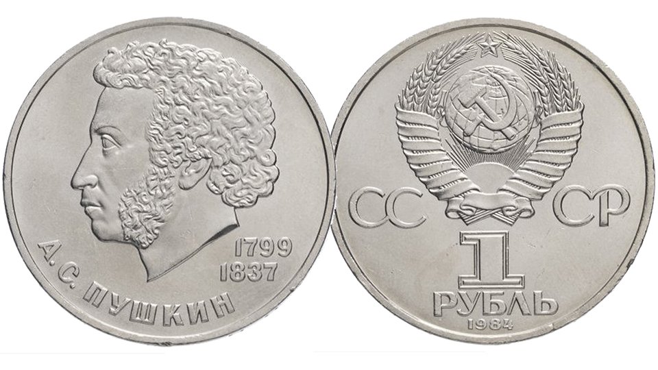 Монета 1 рубль 185 лет со дня рождения А. С. Пушкина выпуска 1984 года.