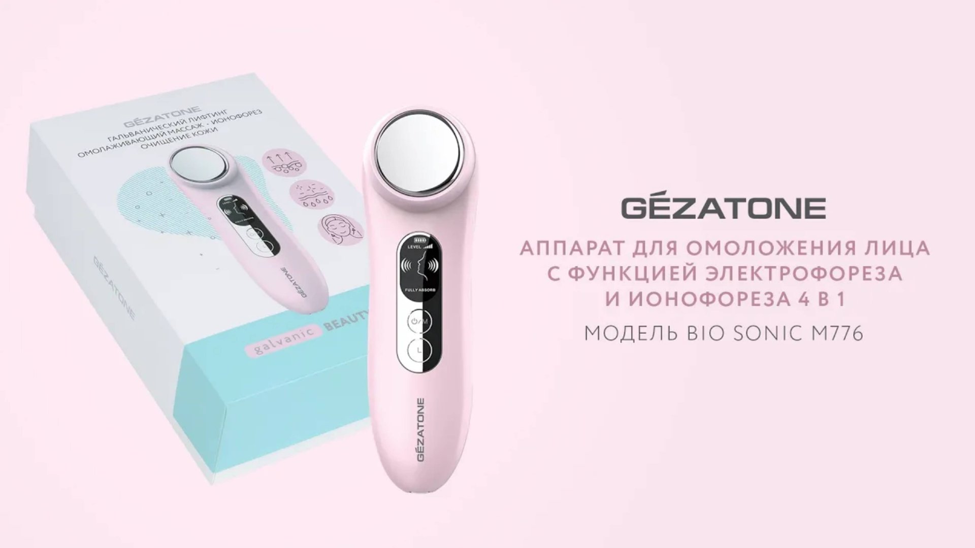 Аппарат для омоложения кожи лица с электрофорезом и ионофорезом Biosonic m776, Gezatone