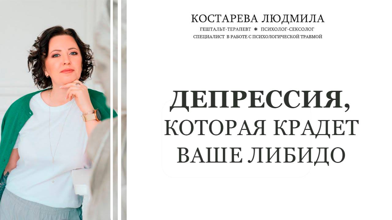 Узнайте, как депрессия разрушает вашу сексуальную жизнь и почему не работают обычные методы решения проблем. Тест для женщин, которые хотят узнать почему у них секс про “надо”, а не “хочу” : https://t.me/kostareva_ludmila_bot Cайт: https://kostareval.ru/ Tg-канал: https://t.me/sexolog_kostareva