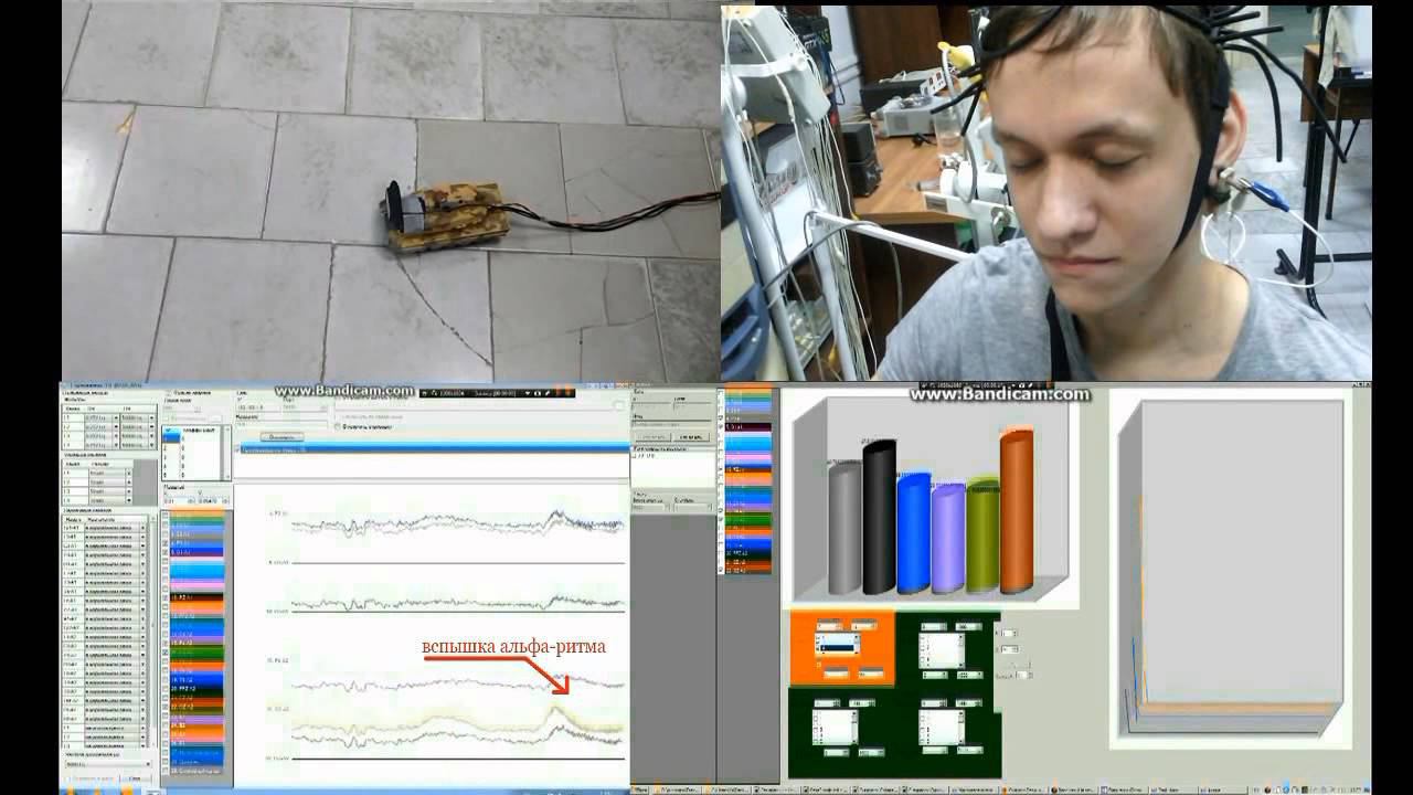 Блокирование движения самоходного шасси если уровень альфа ритма, например при закрытых глаза выше определённого. Типа не спи за рулём