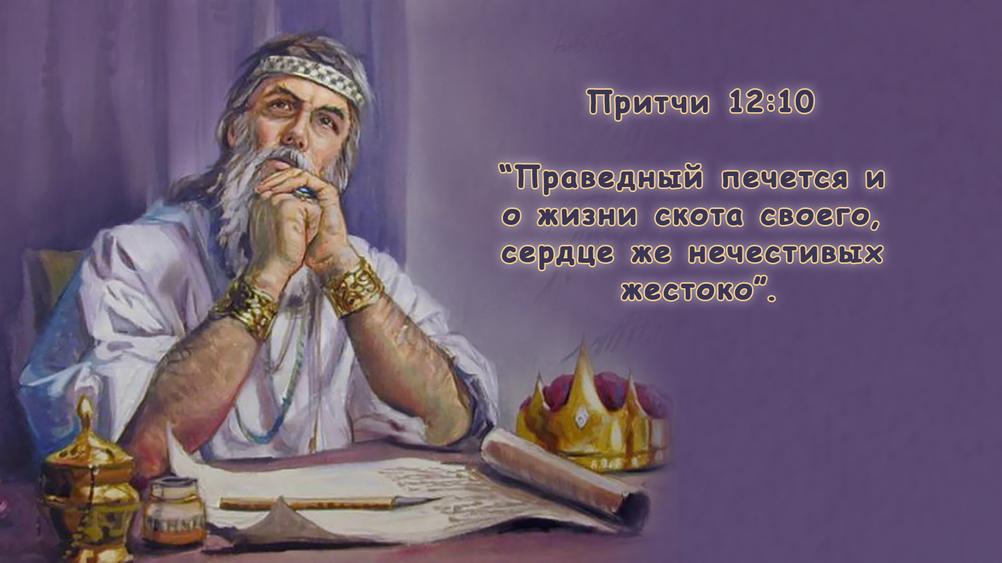 Притчи 12:10 "Праведный печется и о жизни скота своего, сердце же нечестивых жестоко".