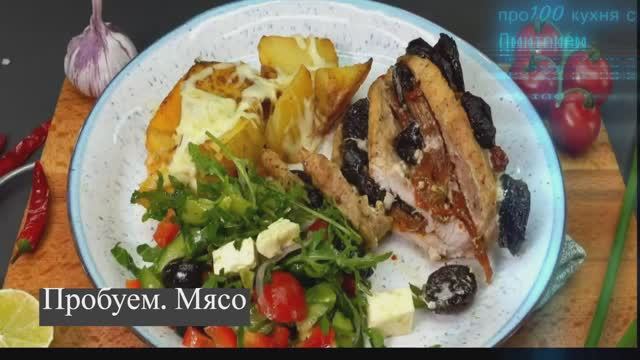 Привет друзья!Добро пожаловать на наш канал! ?.?!?. Ингредиенты: 700 г свинины. Сделайте разрезы. 2 столовые ложки масла. 2 чайные ложки французской горчицы. 1/2 чайной ложки соли. 1/2 чайной ложки сахара. 1/2 чайной ложки черного перца. 1 чайная ложка молотого имбиря. 1/2 чайной ложки перца чили. 2 столовые ложки соевого соуса. Лимонный сок. Добавьте соус к мясу. Накрыть и оставить мариноваться. 200 г чернослива. Оставьте в воде на 10 минут. 6 картофелин. горячая вода. Накрыть крышкой и варить 15-20 минут. 200 г вяленых томатов. Фольга. Сухой пергамент. Помидоры и чернослив кладем кусочками. Завернуть мясо. Выпекать 40 минут при 180°C/356°F. Проверьте картофель. Масло. Масло. 1 чайная ложка паприки. Соль. 1/2 чайной ложки чесночного порошка. Обжарить до золотистого цвета. Салатный микс. 1/2 огурца. 1 перец. 1/2 красной луковицы. 10 помидоров черри. 1 авокадо. Оливки. 100 г (0,2 фунта) сыра фета. Соль и перец. Оливковое масло. 80 грамм сыра моцарелла. Посыпать сыром. Откройте мясо. Выпекать еще 10-15 минут. Приятного аппетита! Друзья, если вам понравился рецепт,дайте знать в комментариях, подписывайтесь и ставьте лайк ?.Готовим для Вас с любовью! ???.