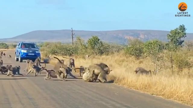 Леопард думал, что может съесть бабуина на глазах у всей своей стаи