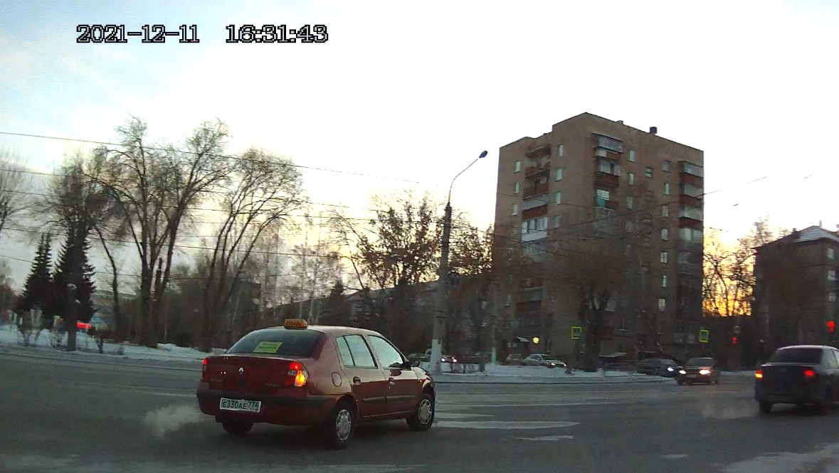Обгон на перекрёстке ул. Суворова и ул. Грязнова. Госномер нарушителя Е330АЕ 774. 12.11.2021