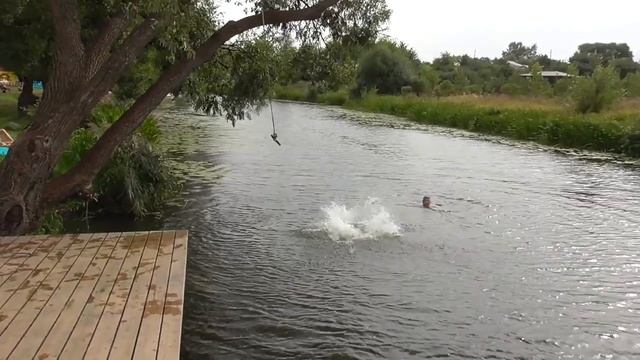 Падение девушки в речную воду.