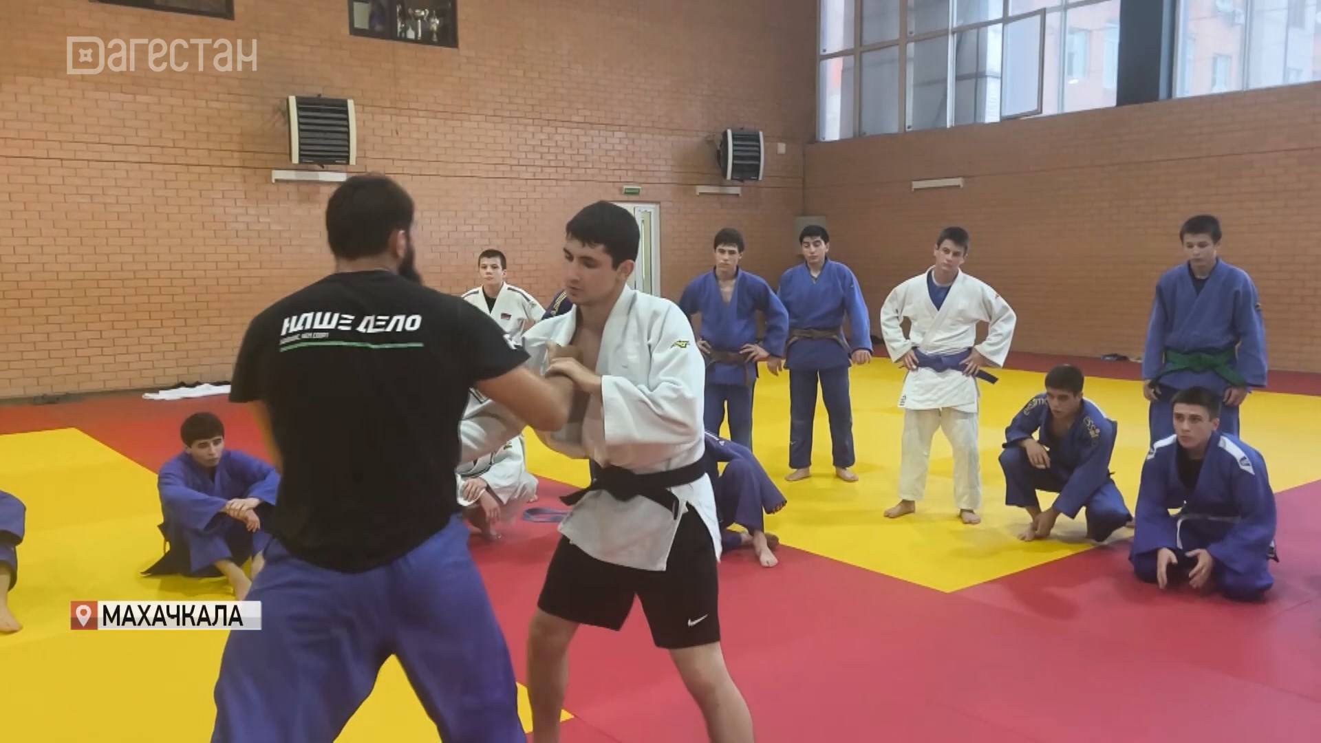 Последние приготовления к Первенству округа по дзюдо до 18 лет спортсменов специализированной школы имени Магомеда Джафарова. За ходом их подготовки наблюдал Дан Шугом.