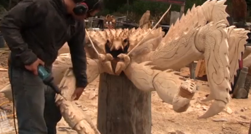 Скульптор вырезал из дерево огромного краба с помощью бензопилы. #скульптура #краб #круто #дерево