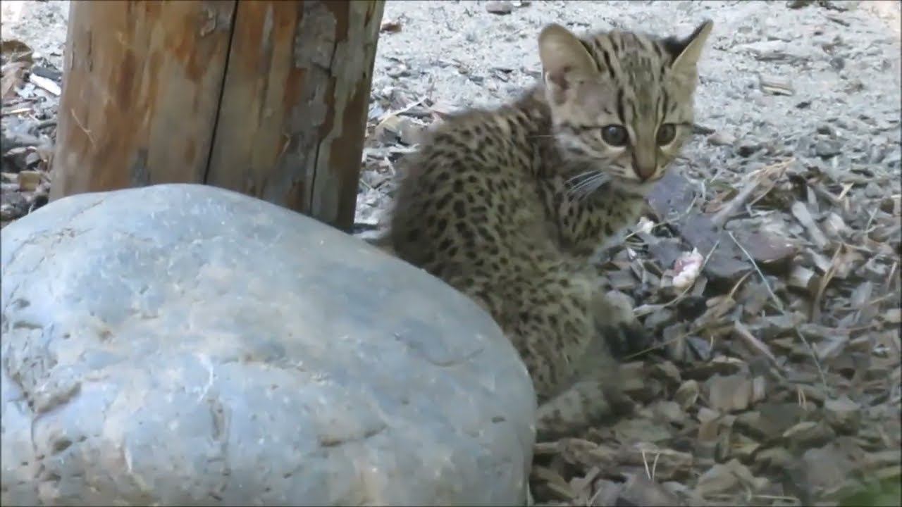 Кошка Жоффруа активна в ночное время, а днём спит на деревьях. По размеру кошка Жоффруа соответствует домашней кошке. Её длина составляет 60 см, а длина хвоста — дополнительные 30 см. Основной цвет шерсти серый или желтовато-бурый, причём первый фенотип встречается главным образом на юге ареала, а второй — на севере. Шерсть покрыта мелкими чёрными пятнами. Достаточно часто наблюдается меланизм (полностью чёрные особи). Эта небольшая южноамериканская кошка стала частью нашей коллекции в декабре 2016 года. Сначала зоопарк из Франции получил самку, затем, в 2018 году, из Чехии был привезен самец. Первые малыши у пары родились в 2019 году. Появление потомства ощутимо меняет поведение самки. Она становится более эмоциональной, готова защищать детенышей от любой угрозы и вмешательства. В начале января 2021 года Вейта родила и выкормила малыша. У кошек жоффруа, живущих в Новосибирском зоопарке, родились малыши. Два котенка появились на свет 15 апреля. В первый месяц жизни шансы увидеть их были минимальны. Мать оберегала детенышей от внимания посторонних. Сейчас начался новый этап из жизни, они много времени проводят на улице.