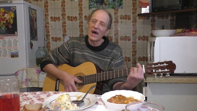 Мой друг играет и поёт.