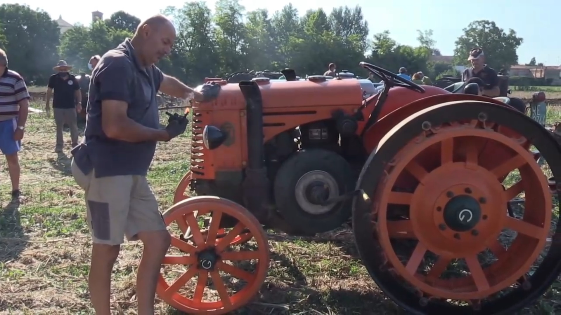 Дизельный трактор 1946 года, мощностью 30 л.с., пашет поле. Надежная техника работает.