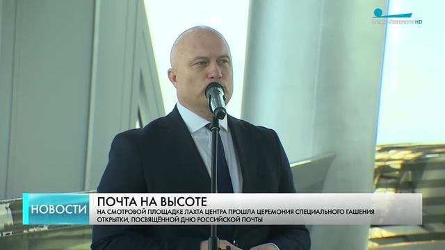 На высоте 365 метров, в самом высоко расположенном почтовом пункте в мире, на смотровой площадке «Лахта Центра», прошла церемония спецгашения открытки, посвящённой Дню российской почты. Карточка с изображением самого высокого небоскреба Европы, выпущена ограниченным тиражом. «С февраля месяца на эту прекрасную смотровую площадку запускают экскурсии, проводят встречи и уже с этого самого высокого почтового пункта уже было отправлено свыше 60 тысяч почтовых открыток», — отметил директор макрорегиона Северо-Запад компании «Почта России» Александр Вакуленко. «Событие неординарное — на высоте 365 метров мы гасим чудесную марку с изображением самого высокого здания в Европе — 462 метра», — сказал заместитель начальника Департамента компании «Газпром» Илья Кочеврин. Был выпущен и специальный почтовый штемпель. На его оттиске — надписи «Лахта Центр», «Почтовый пункт на высоте 365 метров», а также индекс отделения. Печать будут использовать для нанесения на открытки, отправленные из «Лахта Центра».