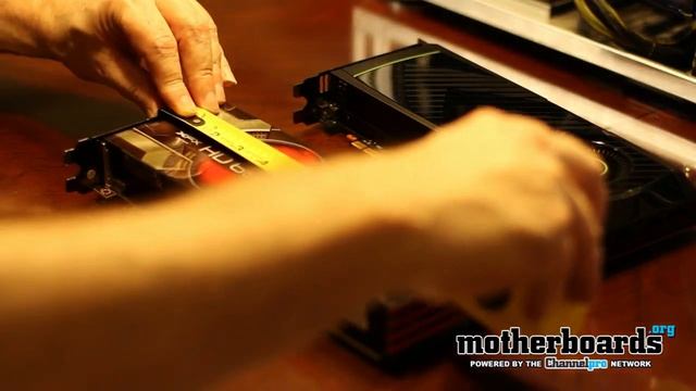 AMD RADEON 6970 vs NVIDIA GTX 580: Length and DepthComparison We compare the length and width measurements on the new XFX RADEON HD 6970 Video Card vs the NVIDIA Reference GTX GeForce 580 Video card. See how they stack up against each other! GPU Wars 2: AMD HD 6970 vs NVIDIA GTX 580! http://www.youtube.com/watch?v=OV3LNjY9-ms XFX RADEON HD 6970 Review: http://www.youtube.com/watch?v=0X2rg-xKsqk CHECK THESE OUT: PRODUCT SPOTLIGHT: The Intel Next Unit of Computing (NUC) is a super small, super cool, PC. See it here: http://youtu.be/adubhVxtCxw SEE ME, FEEL ME: Here are six large-screen (23" to 24"), budget LCD monitors that will please both your wallet AND your eyeballs for under $200: http://bit.ly/V9Y16e FUNNY ERROR MESSAGES We pulled together some hilarious—and some frightening—messages that you might never see: http://bit.ly/Yzw1jp BEST LICENSE PLATES FOR TECHIES On a Prius or Porsche, your personalized license plate tells the world that you are at heart a techie! Check out some our faves here and see if you spot your ride. http://bit.ly/UxpFxP $2500 SUPER GAMING CUSTOM PC Check out our latest gaming build! An ultra-powerful $2500 gaming rig carefully planned out to handle whatever the next generation of games throws your way. Build it here: http://bit.ly/WzHUjJ GAMERS REJOICE! Take a peek at our top selections for 2012 and the holiday season—PC and console games and more. Did your fave make our list? http://bit.ly/UxqUwZ LOL - WORST DIY PC REPAIRS: As a tech guru, you spend a lot of time building systems, troubleshooting, and talking harried users off the ledge. You think you've seen it all—until now. Check out some of the worst PC repairs/upgrades: http://tinyurl.com/9jmu96a VISIT THE SITE: http://www.motherboards.org