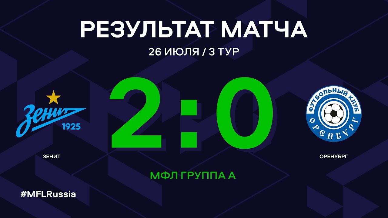 МФЛ. Зенит - Оренбург. 3-й тур. Группа А. Обзор