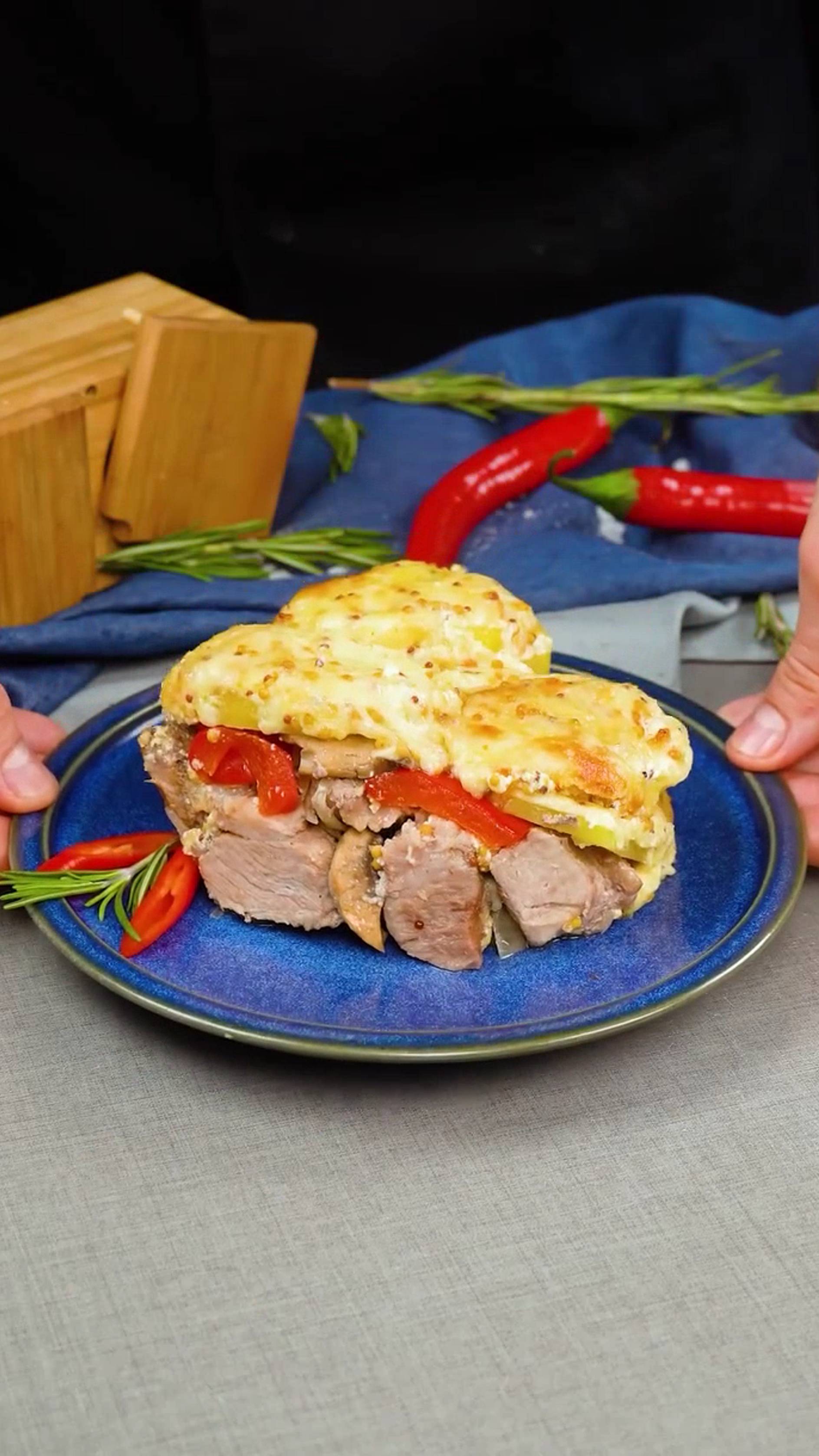 Раньше никто ничего подобного не делал! Мясо тает во рту как масло! Ингредиенты: свиная шейка: 3 кг лук: 2 шт соль: 10 г черный перец: 5 г растительное масло: 50 мл грибы, шампиньоны : 100 г сладкий перец, красный: 1 шт картофель : 200 г моцарелла : 200 г сметана: 200 г растопленное сливочное масло : 100 г зернистая горчица: 50 г пармезан: 30 г Текст атрибуции Royalty Free Music: Bensound.com License code: WZ7EJDWVWX3QXZDQ