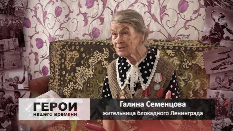 Семенцова Галина Сергеевна родилась 23 апреля 1938 года в пригороде Ленинграда. Когда началась Великая Отечественная война, она была ещё совсем маленькой девочкой. Отец ушёл на фронт и погиб. Ее мама умерла в 1942 году. В четырёхлетнем возрасте Галина Сергеевна попала в детский дом города Ленинграда. Хоть Галина Семенцова и не участвовала в военных действиях, но все тяготы блокадного Ленинграда она вспоминает до сих пор. До 14 лет Галина Сергеевна жила в детском доме. Уже после войны вернулась в Ленинград и поступила в медицинское училище. В 1957 году по распределению попала на Дальний Восток. С 2013 года живет в Биробиджане, в окружении дочери и внуков. Мы помним, мы уважаем, мы чтим героев нашего времени.Цикл программ «Герои нашего времени» создан при поддержке ООО » Транснефть Дальний Восток».