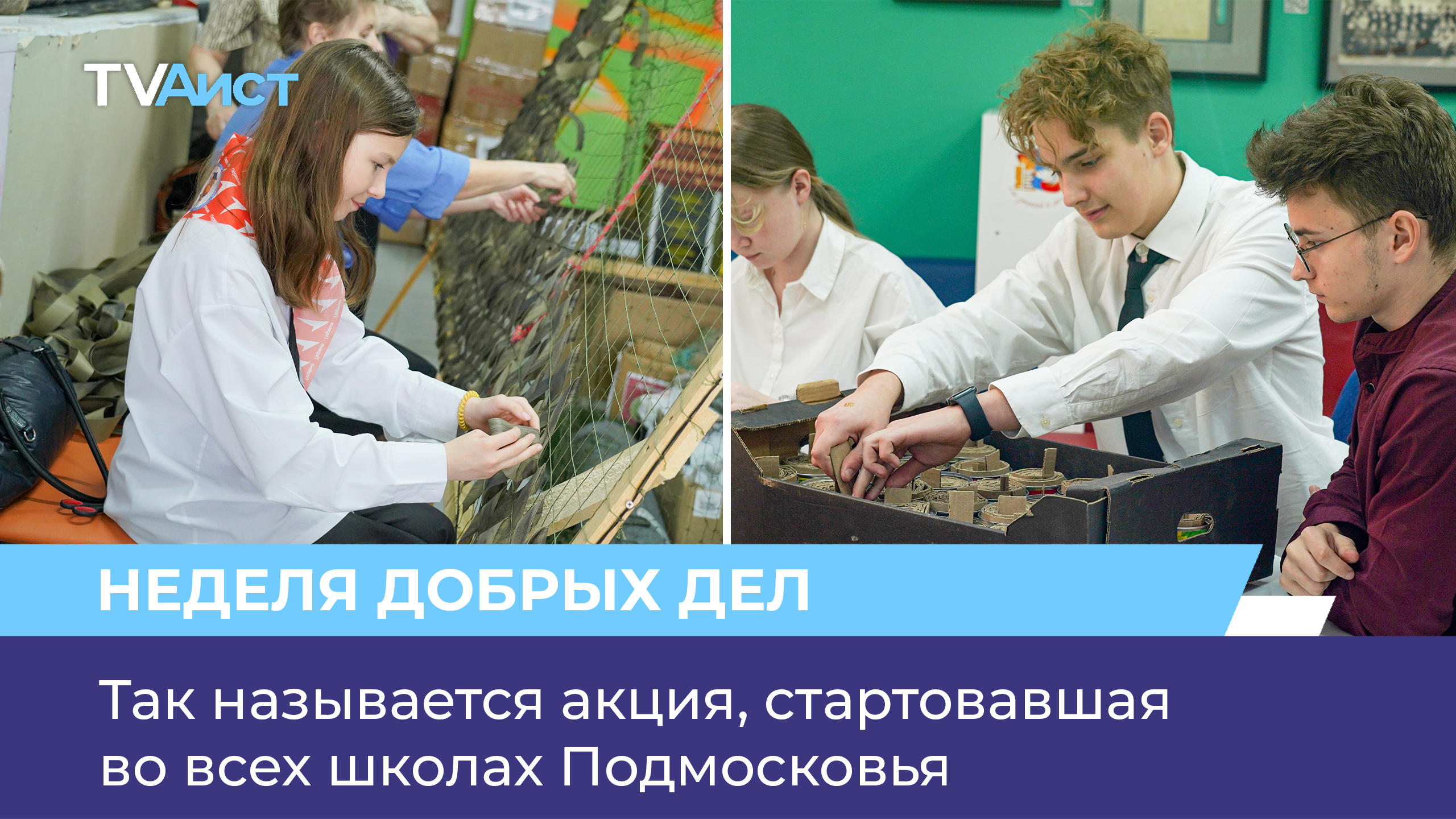 В рамках «Недели добрых дел» школьники Подмосковья смогут заняться плетением маскировочных сетей для участников СВО, сделать блиндажные свечи и расписать пряники, которые отправят на передовую бойцам. Школы нашего округа тоже присоединились к этой акции. Подписывайтесь: • Яндекс.Дзен: https://zen.yandex.ru/tvaist • YouTube: https://www.youtube.com/@tvaist_oz • Информационный центр: http://informc.ru/ • ВКонтакте: https://vk.com/tvaist • Одноклассники: https://ok.ru/tvaist • Телеграм: https://t.me/o_zuevo