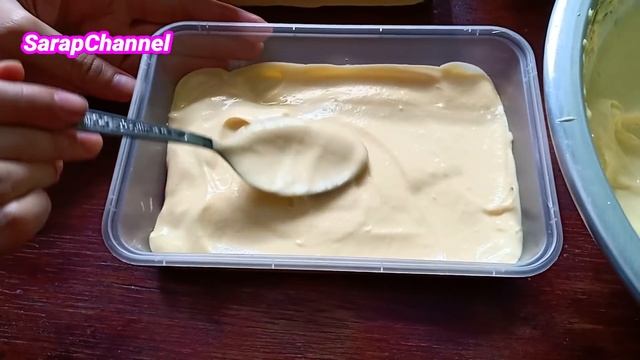 Mango Float Ice Cream Ingredients 3 pcs Medium Size Ripe Mangoes, slice 2 pack(250ml) All-prupose cream, chilled overnight 1 Big Can (300ml) Condensed Milk 1 (25g) sachet Mango Powdered Juice 250g Graham Honey Crackers 10 single pack (Contains 30 pcs) Procedure 1. MANGO ICE CREAM. In bowl beat chilled all-purpose cream using hand mixer over high speed until it double in volume. Pour condensed milk (you can add less or more depends on how sweet you want it). Beat again until condensed milk is well blended into the cream. Add 1 sachet of Mango Powdered Juice, beat again over high speed until well blended. 2. In a deep container arrange graham crackers. Then spread mango ice cream mixture on top of graham crackers. Put slices of mangoes on top of mango ice cream. Repeat process until you reach the top of the container. For the final topping arrange slices of mangoes. Freeze for 4 to 5 hours in the ref until firm or chill overnight. Yields: 4 containers of Mango Float Ice Cream Mango Float Ice Cream Prices of Ingredients 3 pcs Medium Size Ripe Mango _________________________P55.00 2 pack(250ml) All-Purpose Cream _______________________P118.00 1 Big Can (300ml) Condensed Milk ______________________P 31.00 25g Sachet Mango Powdered Juice _____________________P 18.00 250g Graham Honey Crackers __________________________P 52.75 10 single Pack Please subscribe to my channel channelhttps://www.youtube.com/user/SarapChannel/featured Don't forget to like and share! Previous cooking video: "Puto Cheese" https://youtu.be/dBEnJXg6yzQ Follow us on social media: Instagram: schannel21 Pinterest: https://www.pinterest.com/sarapchannel/ Twitter: https://twitter.com/sarapchannel THIS VIDEO IS NOT SPONSORED Editing software: Movie Maker Filmora 8.3.1 Patok Na Negosyo Recipes | Street Food https://www.youtube.com/playlist?list=PLM4cZ81yLmVKfafuZZE_JsEBZRcBR4FNr Desserts And Sweet Recipes https://www.youtube.com/playlist?list=PLM4cZ81yLmVIr0r8unkjgnlDQXrBIWTxC No Bake Desserts | Ice Box Cake Recipes https://www.youtube.com/playlist?list=PLM4cZ81yLmVJrg-IZyEZa0huQ2cXgsOcE Ice Candy Recipe https://www.youtube.com/playlist?list=PLM4cZ81yLmVKRmWfImsYFftDcDX_cUBXX Samalamig | Summer Drinks https://www.youtube.com/playlist?list=PLM4cZ81yLmVJtIQbw2I9XdJdEzvXvkIWY Toaster Oven Series https://www.youtube.com/playlist?list=PLM4cZ81yLmVJ2Vjh7LdVdM8-dQV1NHcYd Cooking Tutorial https://www.youtube.com/playlist?list=PLM4cZ81yLmVKPXfFL1ahNe84hcLRa7XRY Bento Series https://www.youtube.com/playlist?list=PLM4cZ81yLmVJWDm5l4XN0ID9ezm3hF8b2 Filipino Street Food https://www.youtube.com/playlist?list=PLM4cZ81yLmVLxVPn1ri1MbuaIaTRj5U96