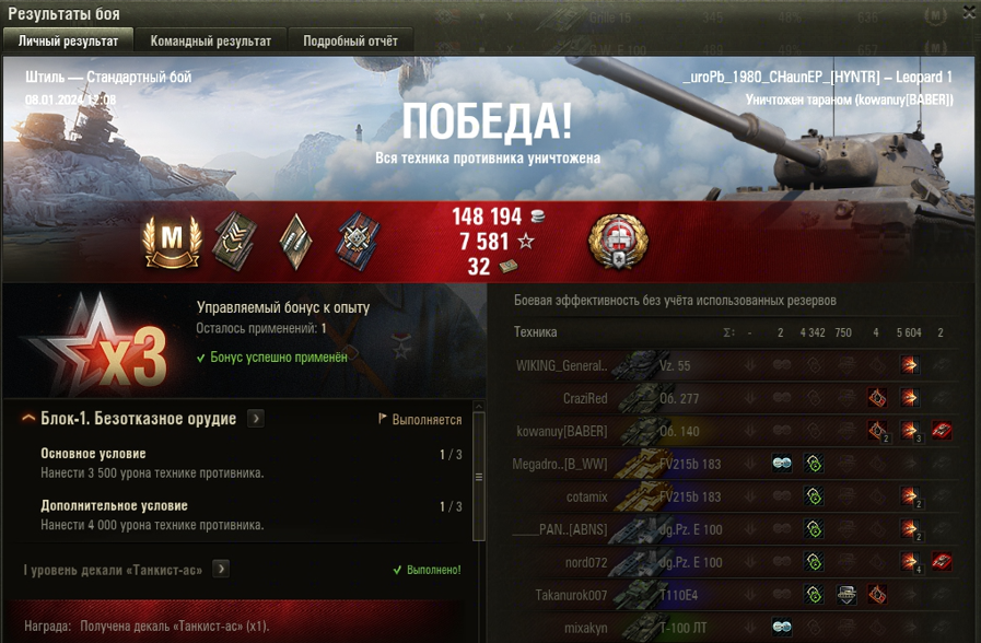 ШТИЛЬ МАСТЕР на Leopard 1 ОПЫТ: 1263 СУММАРНЫЙ УРОН: 9946 медаль ТАНКИСТ СНАЙПЕР