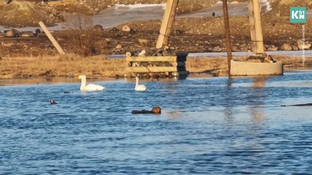 Сразу три лебедя выбрали местом для отдыха водоем рядом с промплощадкой Кольской ГМК в Мончегорске. И это далеко не первый раз – мончегорцы сообщают о таких встречах каждый год. Видео Марины ЦЕЛИКОВОЙ