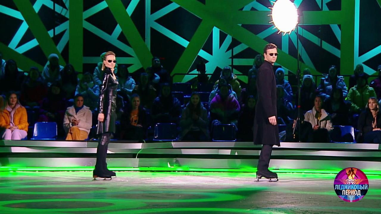 На льду – актер Вольфганг Черни и чемпионка мира Оксана Домнина. Они танцуют под композицию «Clubbed to Death» в исполнении коллектива «Escala».