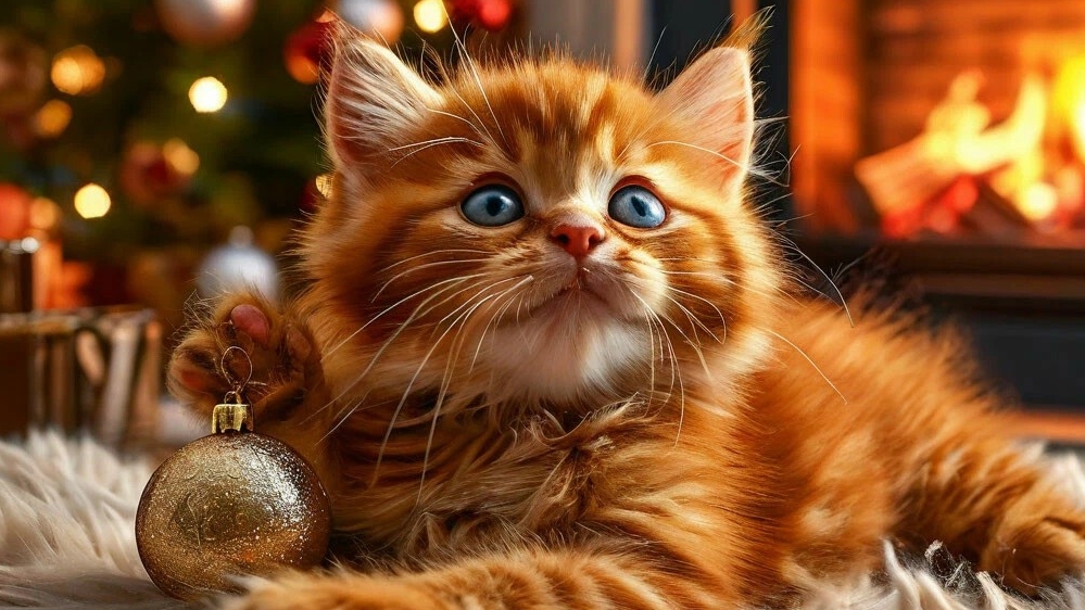 Классное видео о рыжем коте : Новогодние приключения рыжего котёнка.