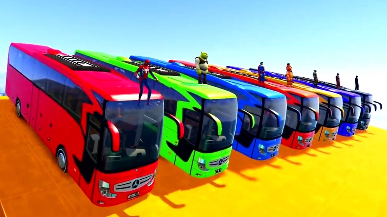 Человек-паук и Цветные Большие Автобусы. Супергеройский Паркур-Челлендж. Мультфильм для детей.