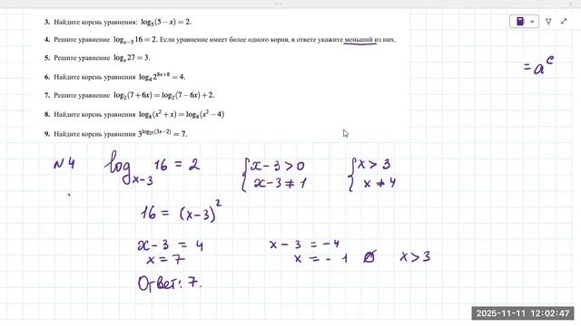 11.11 логарифмические уравнения