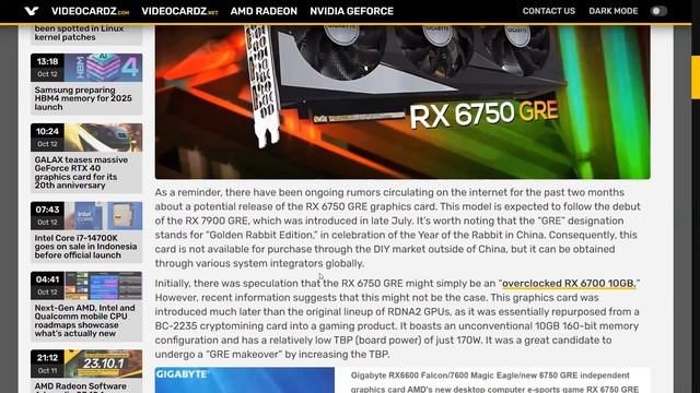 RX 6750 GRE 12GB تأكيد لمعاد اطلاق كارت | Intel Core i7-14700K عملية بيع مبكرة لمعالج
