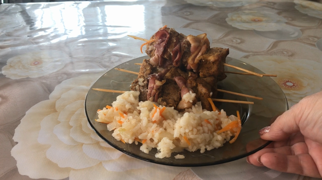 Ингредиенты: рис - 250 г морковь - 250 г лук - 200 г вода - 600 мл свиная шейка - 1 кг соль - 10 г черный перец - 5 г сладкая паприка - 5 масло подсолнечное 2-3 ст л В ХОЛОДНУЮ ДУХОВКУ ВЫСТАВЛЯЕМ 180 °C НА 50 МИНУТ