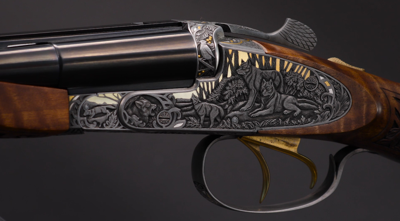 Мы продолжаем серию публикаций о высокохудожественном оружии, сегодня на очереди МР-221 «Русское Сафари». Длина его стволов - 600 мм. Калибр - 7,62х63 мм. Обронная гравировка выполнена с всечкой драгоценных металлов. Художественная резьба по дереву с растительным орнаментом. Приклад «Кабанья Спинка» выполнен из ореха. Исполнение класса «Эксклюзив». Ориентировочная стоимость - 350 000 рублей.