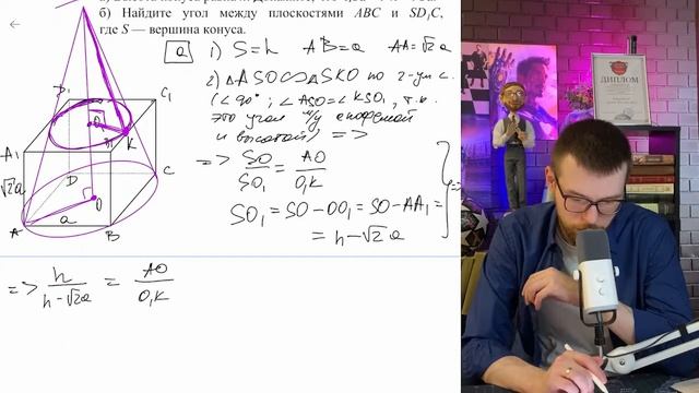 Грань ABCD куба ABCDA₁B₁C₁D₁, является вписанной в основание конуса, а сечением конуса - №16190