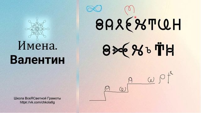 В этом видео мы поговорим о таких Именах как "Валентин" и "Валентина" с точки зрения ВсеЯСветной Грамоты. Автор видео - Татьяна Константиновна Б.-С. Страница в ВК - https://vk.com/tkbaiko8a Для тех, кто хочет выразить благодарность автору видео и поспособствовать развитию канала: Сбербанк: 2202206172325172 МИР (Татьяна Константиновна С.) ГазпромБанк: 2200011808355474 МИР (Татьяна Константиновна С.), , карта привязана к номеру телефона +79657801147 Школа ВсеЯСветной Грамоты в ВК https://vk.com/chkola8g Литература и обучающие курсы по ВсеЯСветной Грамоте https://vk.com/lavkagramotew #Этимология #ВсеЯСветнаяГрамота #ВГ #ШколаВГ #etymology #Грамота #ЭтимологическийСловарь #ВсеЯСветная #учимграмоту #Валентин #Валентина
