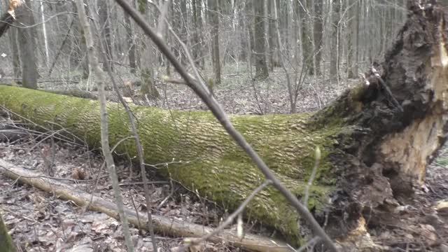 Снимаю, говорю, совершая прогулку по весеннему лесу 26.03.2025 года. Слякоть, бурелом, пустой лес, поваленные стволы деревьев, первые почки на ветвях.