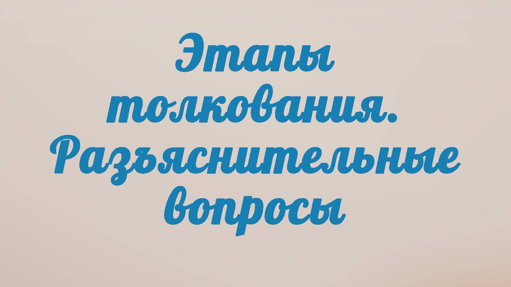 В данном видео разбирается первый этап в толковании. В лекции рассматриваются: разъяснительные вопросы ключевые разъяснительные вопросы формулировка разъяснительных вопросов этапы поиска разъяснительных ответов Просмотрев лекцию, Вы узнаете, что такое разъяснительные вопросы, и как следует правильно их формулировать. Вы научитесь правильно отвечать на поставленные вами вопросы. Вы закрепите полученные знания на практике. Пройти онлайн-обучение по этому и другим библейским курсам Вы можете на сайте tvseminary.com