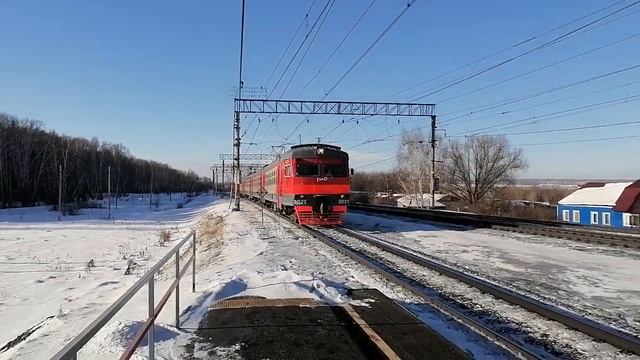 «Последний ЭД2Т на ЮУЖД» Эектропоезд ЭД2Т-0031 с пригородным поездом №6016 Миасс-1 — Челябинск-Главный прибывает на О.п. Бутаки, Челябинская обл., ЮУЖД Дата: 29.01.2023