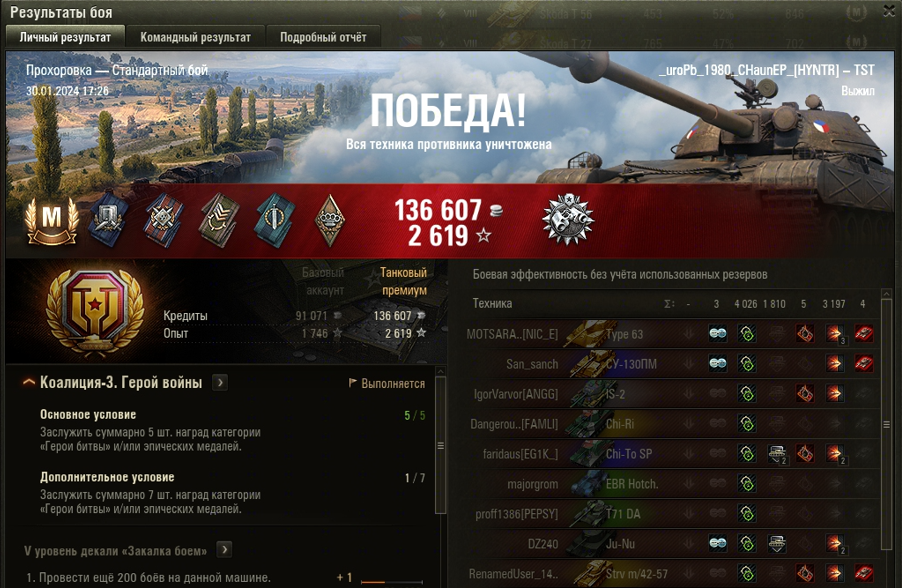 ПРОХОРОВКА МАСТЕР на TST ОПЫТ: 1587 СУММАРНЫЙ УРОН: 7223 медаль ДОЗОРНЫЙ