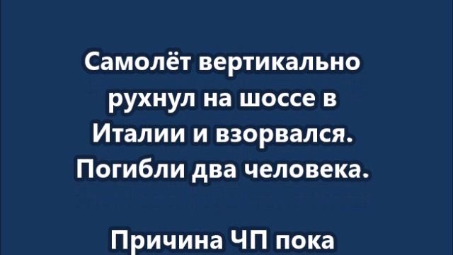 Самолёт вертикально рухнул на шоссе в Италии и взорвался