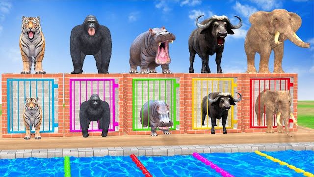 Длинная игра-слайд с Коровой, Слоном, Гориллой, Бегемотом, Тигром - 3d Игра с животными