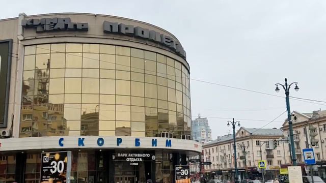 Надпись Скорбим на кинотеатре Пролетарий в Воронеже