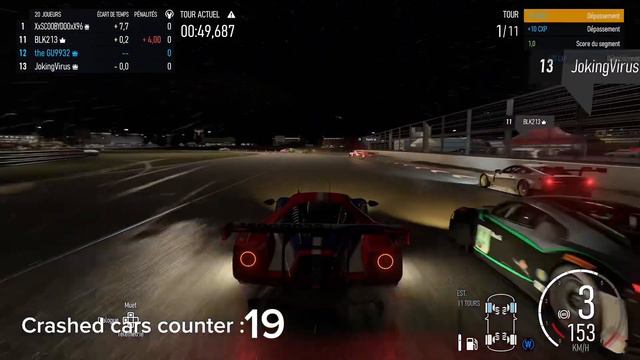 Crash counter is activated in a a race at indianapolis at night time with rain. What could go wrong…