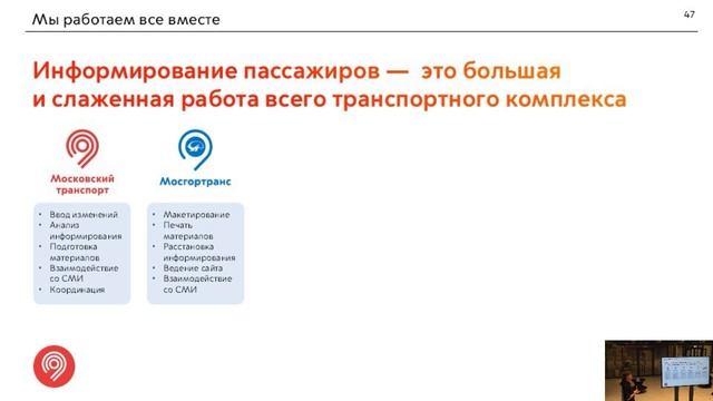 Лекция о том, как Департамент транспорта Москвы информирует об улучшении маршрутов