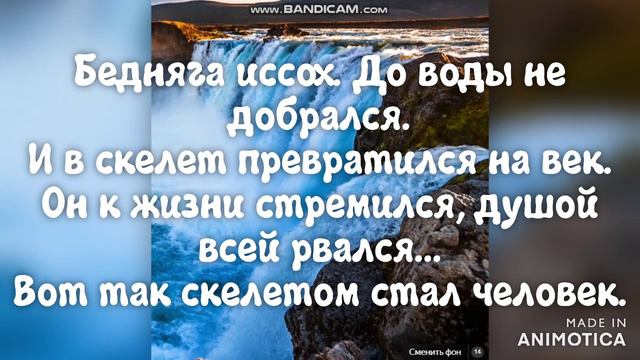 Бедняга иссох, до воды не добрался. И в скелет превратился на век. Он к жизни стремился, душою всей рвался... Судьба подвела, стал скелетом человек. Человек и водопад. Он шел очень долго, и иссох. #шутка #человек #водопад #иссох #скелет #прикол #юмор #жизнь #мечты #реальность #влага #желания #мир #лучшее #рекомендации #топ