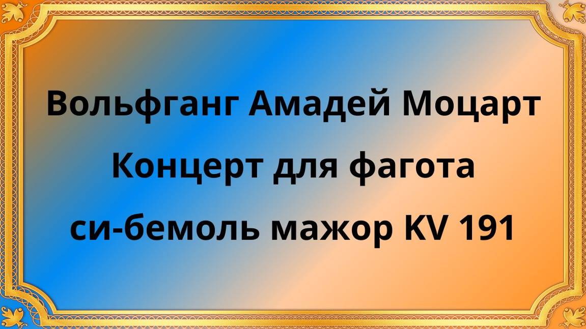 Вольфганг Амадей Моцарт Концерт для фагота си-бемоль мажор KV 191