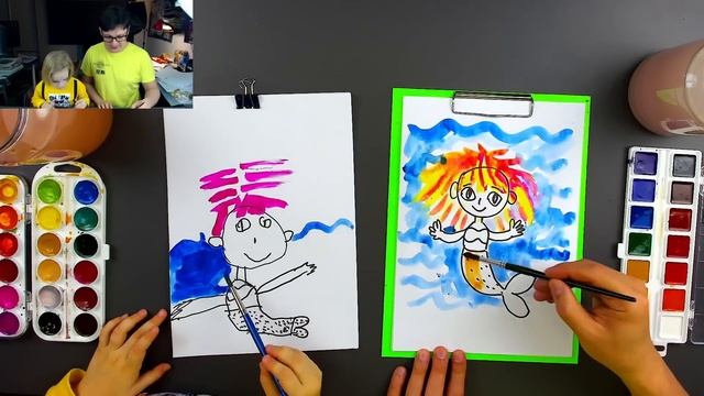 Рисуем РУСАЛКУ с Ариной красками - урок творчества для детей
