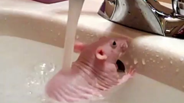 Бесшерстная порода крыс. Рио очень любит мыться