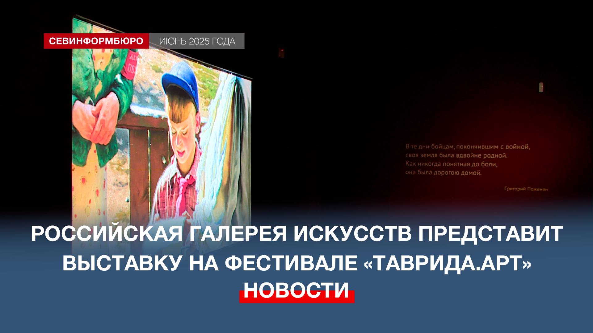 Российская галерея искусств представит свою выставку на фестивале «Таврида.АРТ». В пятницу, 1 августа гости и участники форума смогут увидеть медиаэкспозицию «Победа. Образ – традиция». Этот проект приурочен к одному из главных праздников в нашей стране, а также Году защитника Отечества. Он представляет собой многогранное исследование образа Победы и традиции его отражения в русском и советском искусстве. Демонстрируются цифровые копии произведений — зрители знакомятся с увеличенными фрагментами полотен, а затем с картинами целиком. Также экспозиция включает видеоинсталляции с участниками спецоперации из Севастополя. Подписывайтесь на наш Телеграм-канал: https://t.me/nts_novosti Смотрите новости Севастополя и Крыма на сайте НТС: http://nts-tv.com В нашей группе "ВКонтакте": https://vk.com/ntssevastopol На странице в "Одноклассниках": https://ok.ru/ntssevastopol