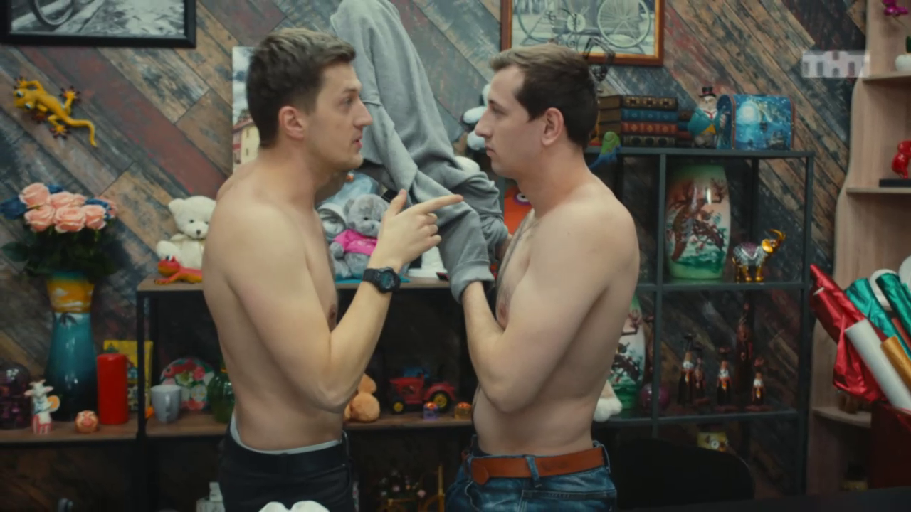 Виталик и Борян экстренно меняются одеждой, чтобы Виталика не спалила Луиза, что тот отжигал прошлую ночь с девушкой с пониженной социальной ответственностью.