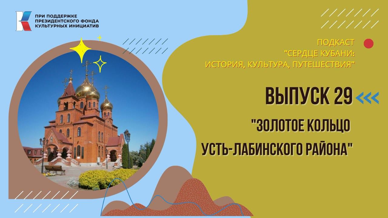 В двадцать девятой серии подкаста «Сердце Кубани: история, культура, путешествия» в студии Центральной районной библиотеки снова специальный гость — библиограф Усть-Лабинской городской библиотеки-филиала №1, прихожанка храма святого Сергия Радонежского города Усть-Лабинска Елена Владимировна Бурлай. И сегодня мы с вами посетим так называемое «Золотое кольцо» Усть-Лабинского района. Мы перенесемся к одним из самых красивых архитектурных сооружений района, увенчанных золотыми и не только куполами, — к храмам. Проект реализуется при поддержке Президентского фонда культурных инициатив. А если вас заинтересовала история Усть-Лабинского района, то рекомендуем следующие книги: 1. "История, этнография и фольклор Кубани (материалы Кубанской фольклорно-этнографической экспедиции). Том третий: Усть-Лабинский район" составители: российский этнограф, кандидат исторических наук Н. И. Бондарь и кандидат исторических наук А. И. Зудин; 2. «Усть-Лабинск. Историко-краеведческие очерки 1794-2014 гг.», авторы: А. Забазнов, С. Савенко и Т. Карасёва, рецензент доктор исторических наук В.Н. Ратушняк; 3. «С верой в Бога, с любовью к людям…», автор: протоиерей Александр Черных #местосилы #православие #православиенакубани