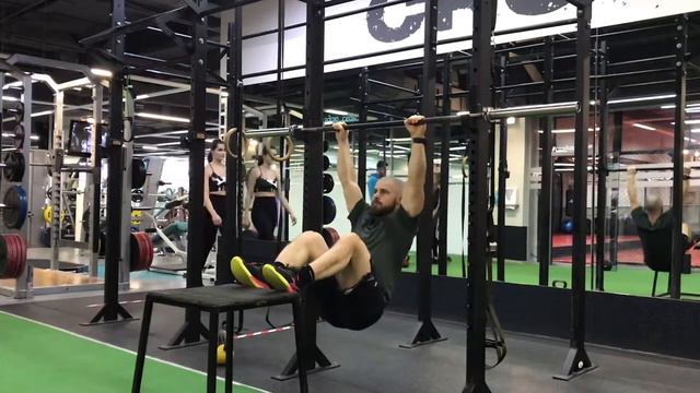 Статодинамические подтягивания на низкой перекладине ноги на тумбе